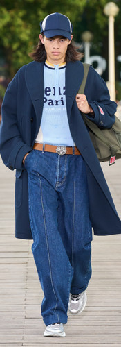 A Kenzo também trouxe jeans para a passarela com detalhes de costuras, estamparia a laser e uma proposta de bermuda bem abaixo do joelho (ou seria uma calça ainda mais curta, que se repetiu na Dior Homme).